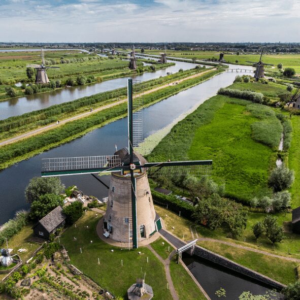 Enjoy a sweeping polder landscape around Kinderdijk, full of historic villages, nature straight from the Green Heart, 56 windmills, and the best Dutch cycling and hiking trails!